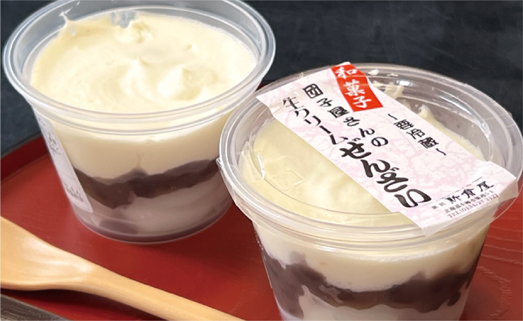 お団子に北海道産小豆の粒あんと生クリームが2層になっています。もう美味しいに決まってます!これに、アイスクリームをトッピングして食べたくなってしまいますね。