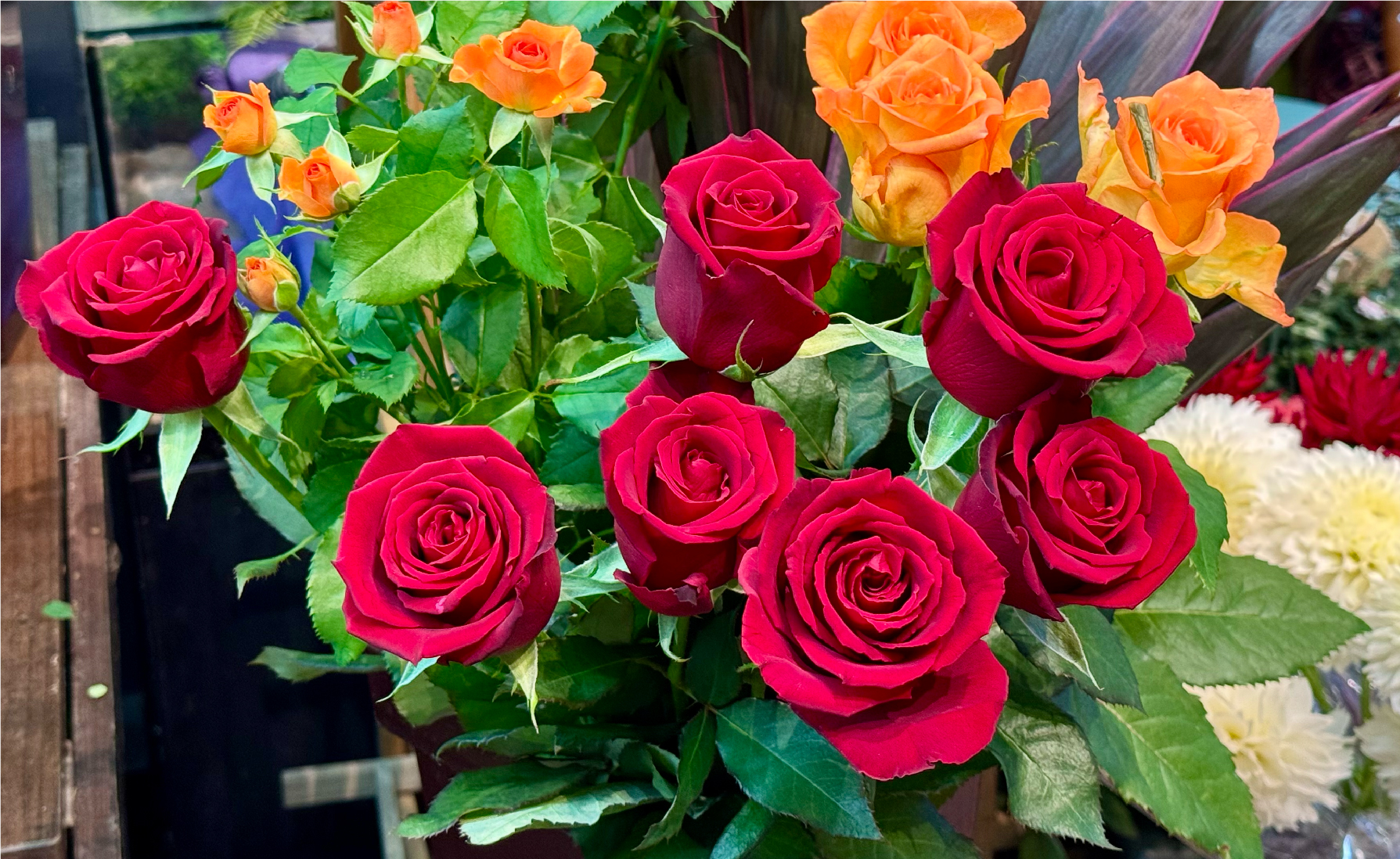 花束・アレンジ・スタンドなどご要望に対応可能。1本の茎から複数の花が咲くスプレー咲きのバラもあります。大量にご利用の際は5日くらい前のご予約が安心。その他秋らしい色のお花も多数入荷中。