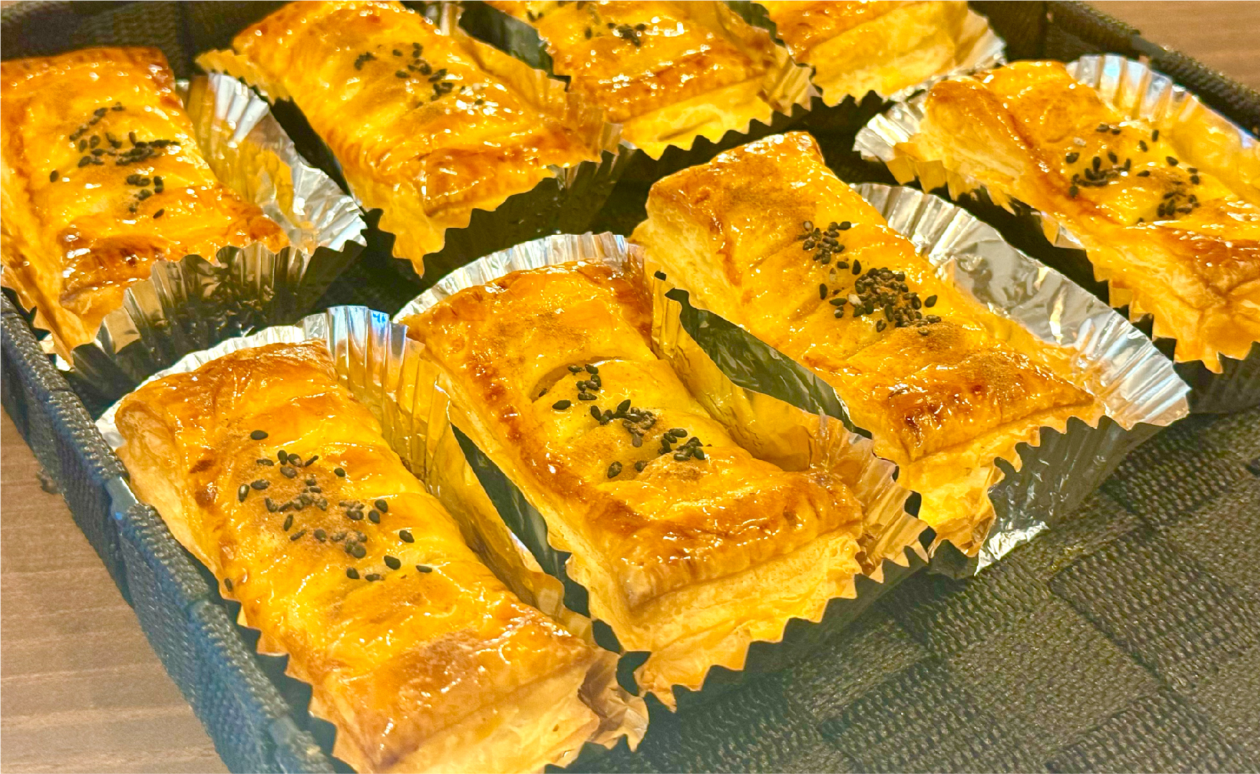 白餡にさつまいもとバターをねり込んだ洋風な餡がパイ生地に包まれ、こんがり焼かれています。サクサクの生地と滑らかな餡のコントラスト、そして香るバターがクセになる一品。