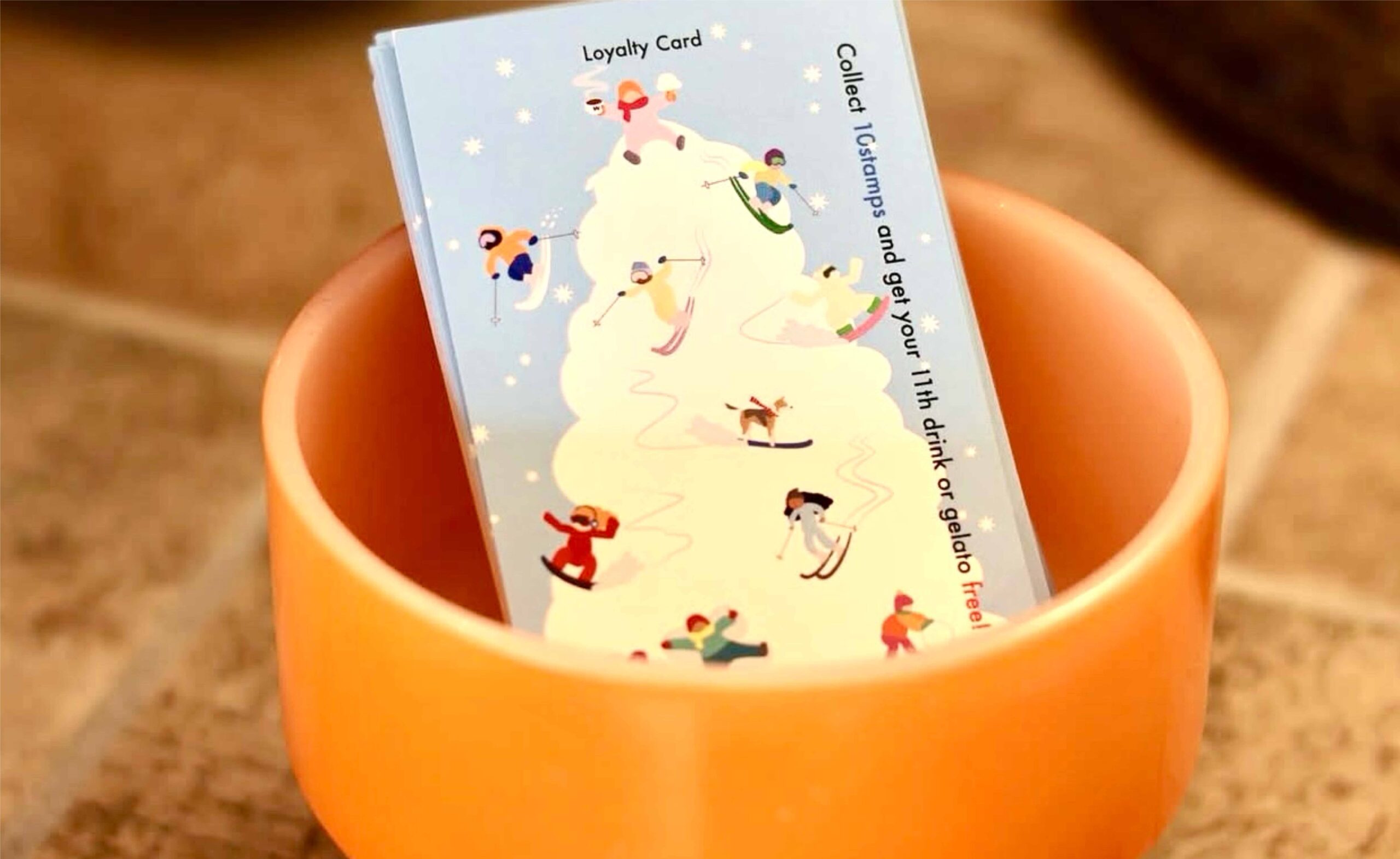 来店1回でスタンプ1個。スタンプが10個貯まったら、11回目のご来店でドリンクorジェラートFREEです。しかもジェラートはダブル・トリプルOKなので、超お得!レジ横にありますので是非♪