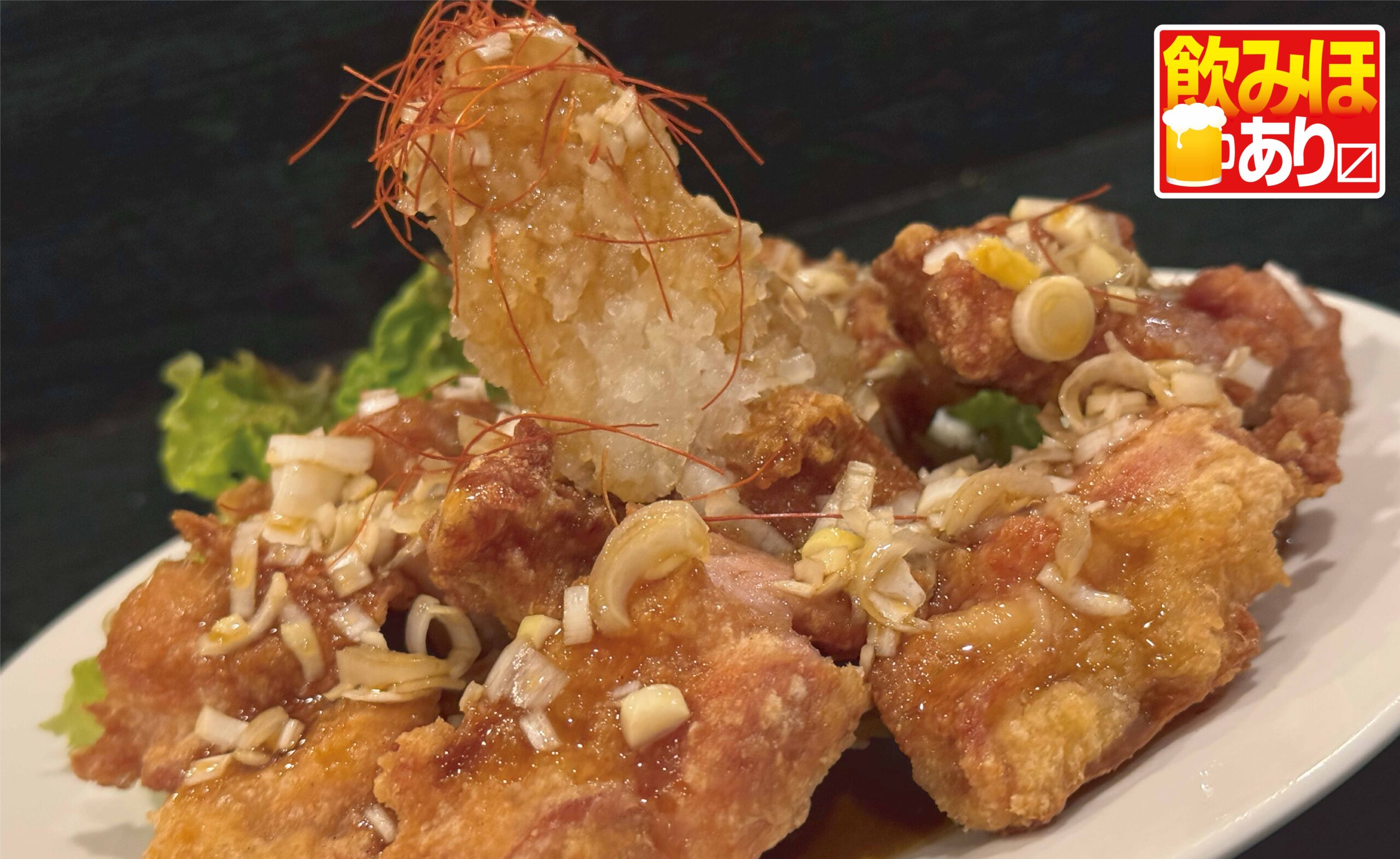 ほっこり酒場 ぽんカリッと香ばしく揚がった衣、肉汁たっぷりの鶏モモ肉…もう旨いの確定!さらに油淋鶏のタレで美味しさ2倍。ビールと一緒なら旨さ3倍。食べ応え満点のボリュームも嬉しい!はい!優勝です。