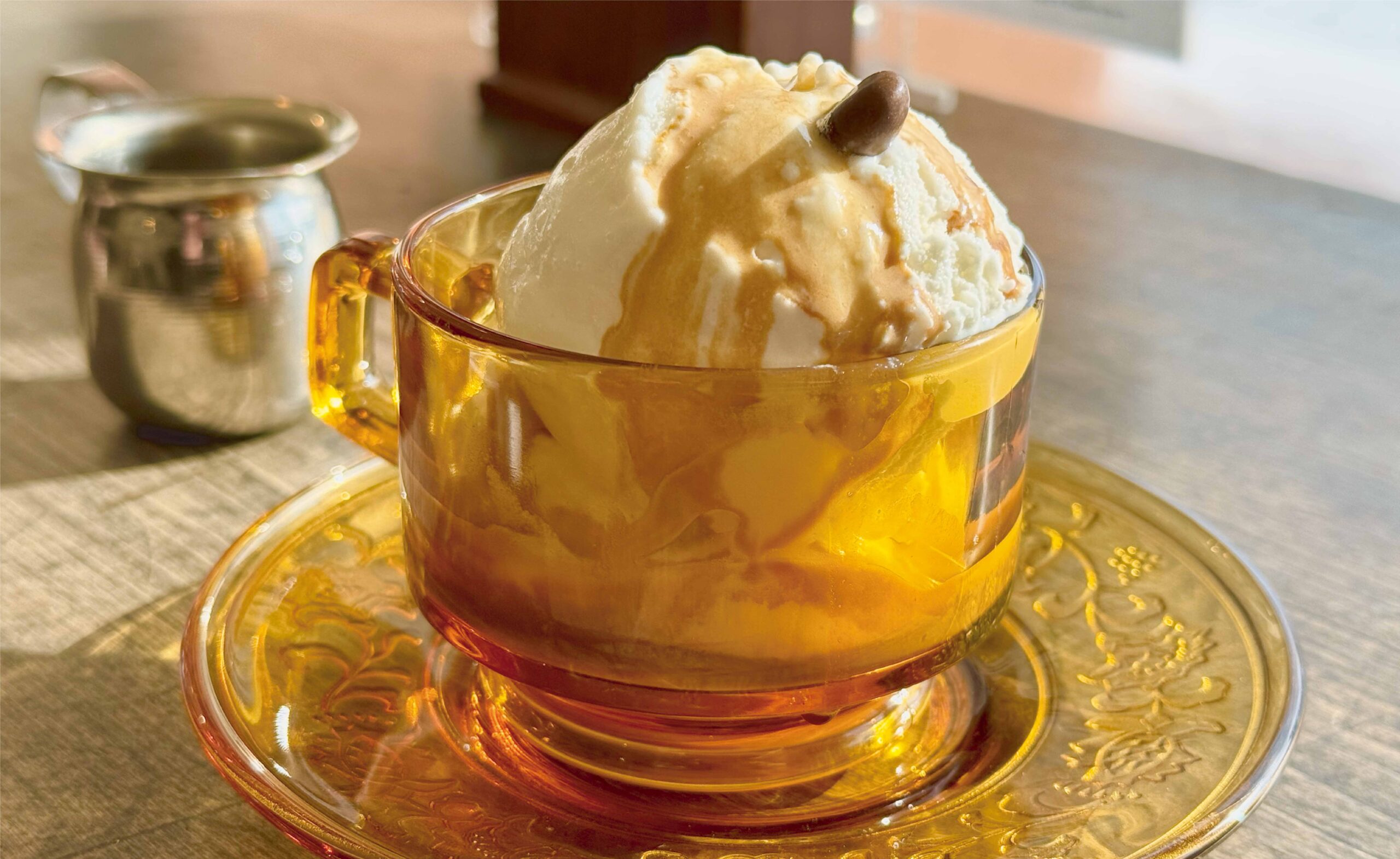 リッチミルク2段にエスプレッソをかけて…。少しずつかけながら?それとも全部かけちゃいます?口溶けの良いミルキーなジェラートの甘さと、エスプレッソの苦味・香りの相乗効果で美味しさアップ。