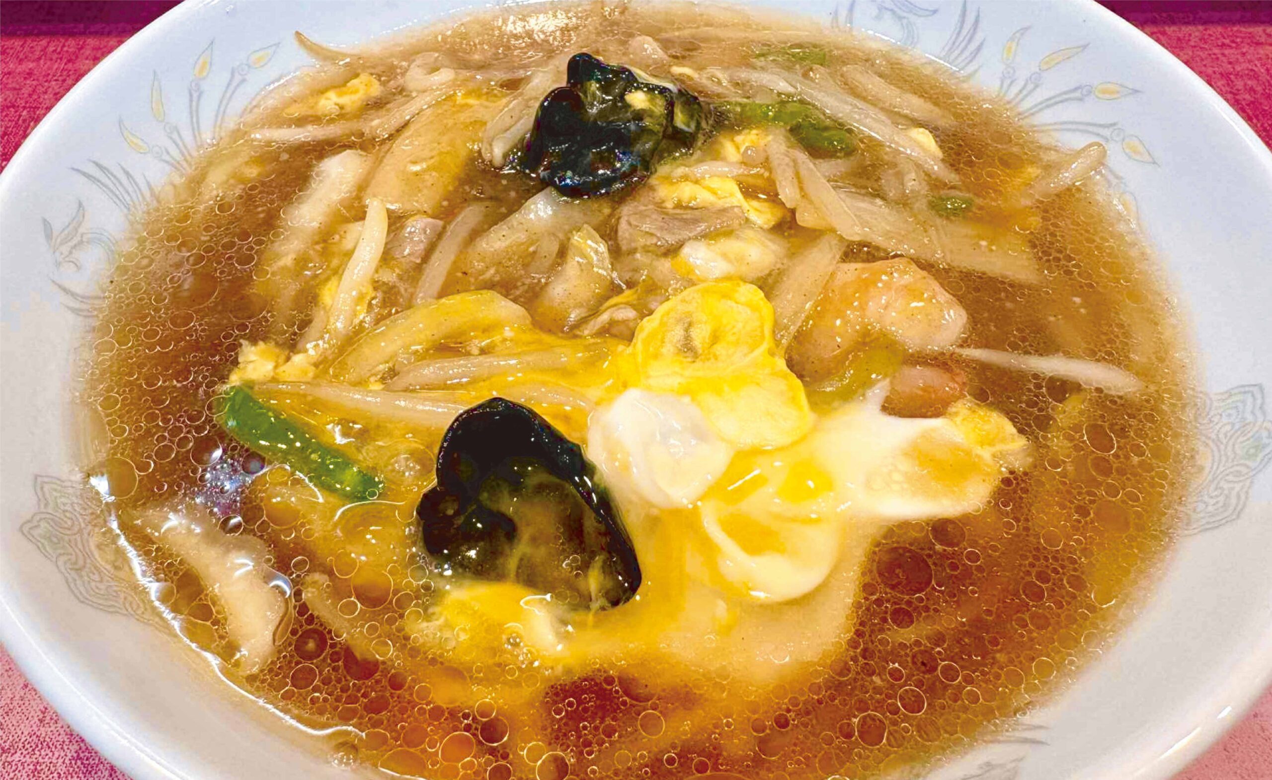 あんかけ焼きそばが人気の桂苑さんには、あんかけラーメンもあるんです!とろみある醤油味のスープに野菜の風味が溶け出して旨い!卵のふんわり感もイイ!