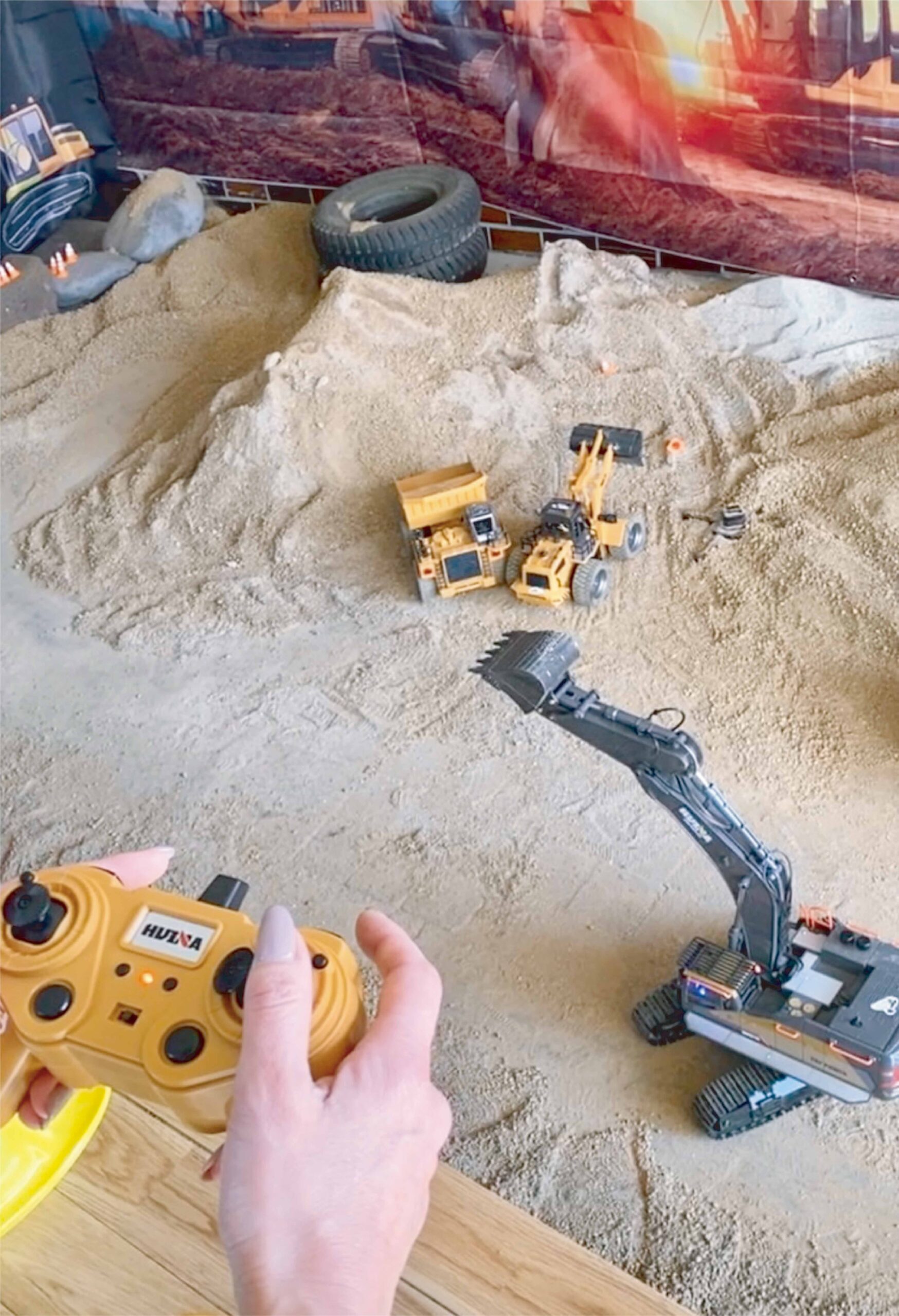 ブルドーザーで集めた砂をショベルカーでダンプカーに乗せて運ぶ…そんな遊びができるんです。