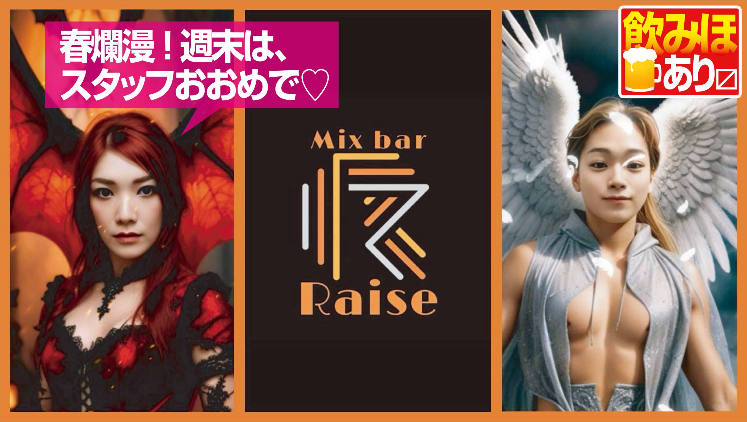 Mix ber Raise(ミックスバー レイズ)〆に裏メニューで美味しいのありますよ〜チャーム・チャージ2,000円、ボトル3,000円〜、「たるぽん見た」で、飲み放題は3名様で4,000円、4名様以上で3,500円とお得になります!