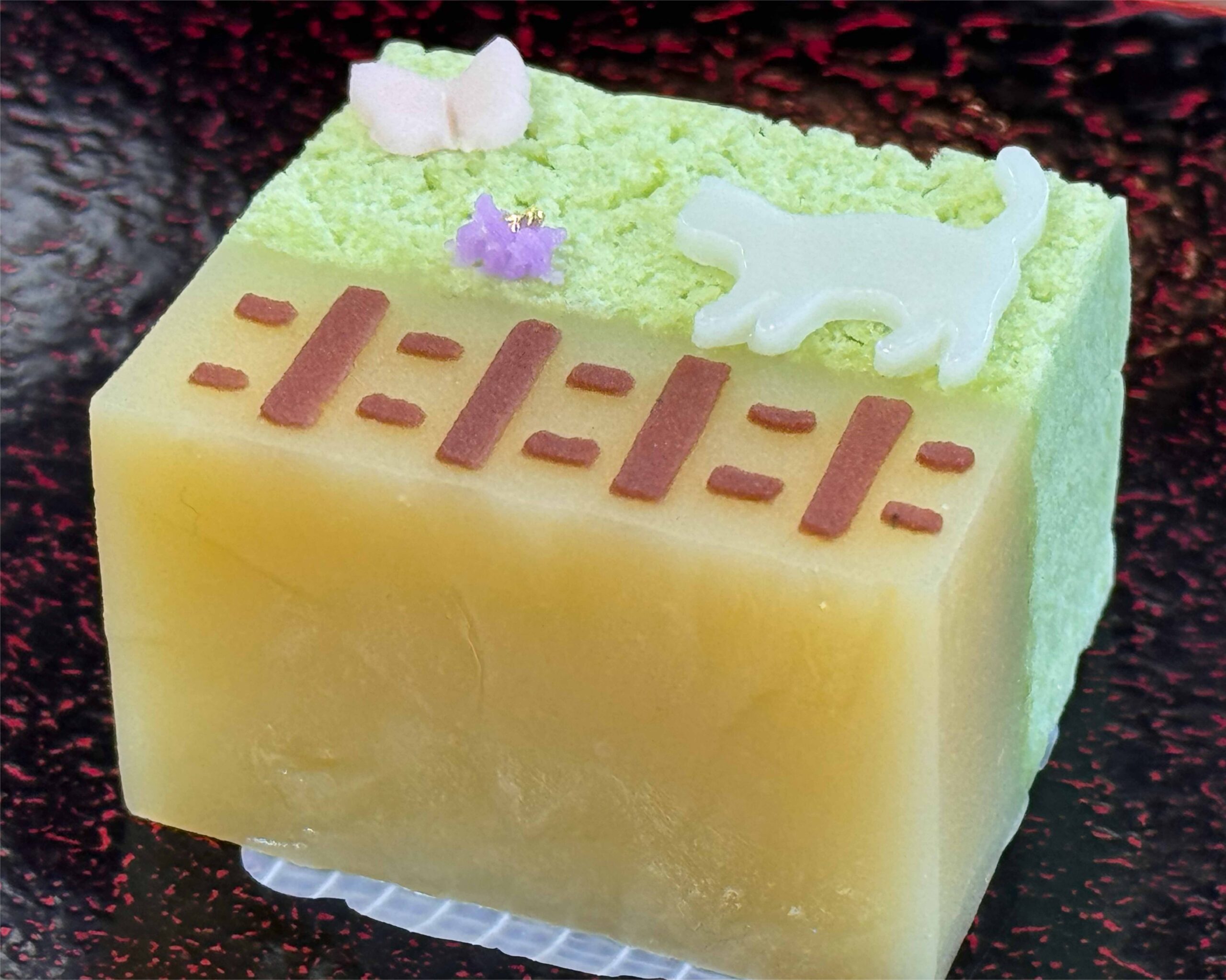 新倉屋 花園本店新倉屋さんの季節の上生菓子が新しくなりました。黄味時雨ときんとん餡を重ね、旧手宮線のレールを「筋すり込み」で表現。春のパステルカラーとやさしい甘さで、小樽らしい一品です。